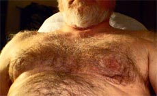 playing with my tits and stroking my chest hair.